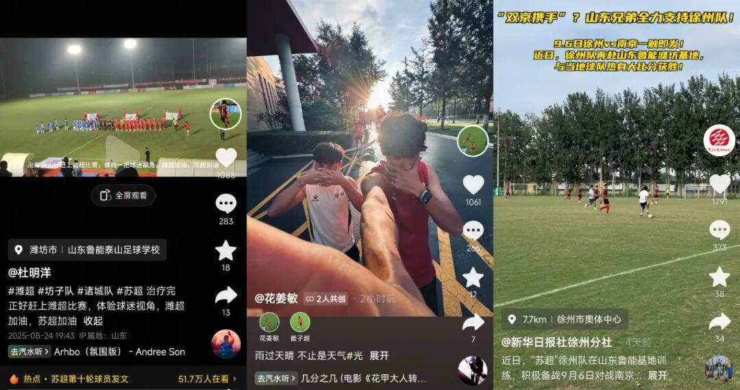 △徐州队队长杜明洋、球员花姜敏、崔子越分别通过短视频平台与网友分享训练生活。另据报道,徐州队在与山东本地球队的友谊赛中表现出色。